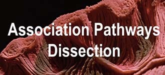 Close up film photography of the human brain and a dissection of the association pathways within the brain.